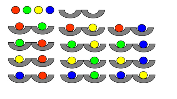 Пример 7. Число перестановок 4 объектов на рисунке 2 будет равно: