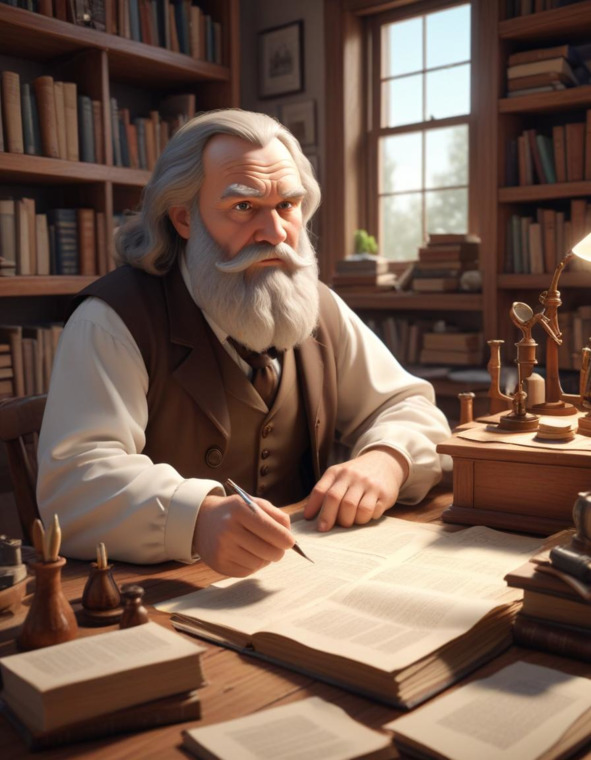 Туманный день, запахи химикатов и мерцающие лампы наполняли лабораторию Менделеева, где он, погруженный в размышления, стоял перед огромной доской, исписанной химическими символами. Дабыл-Дабылдыч, заметив беспорядок и нахмуренные брови ученого, осторожно спросил: