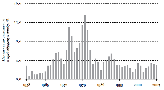 РИС. 2.1. Изменение CPI-U в США за 1958–2007 гг.