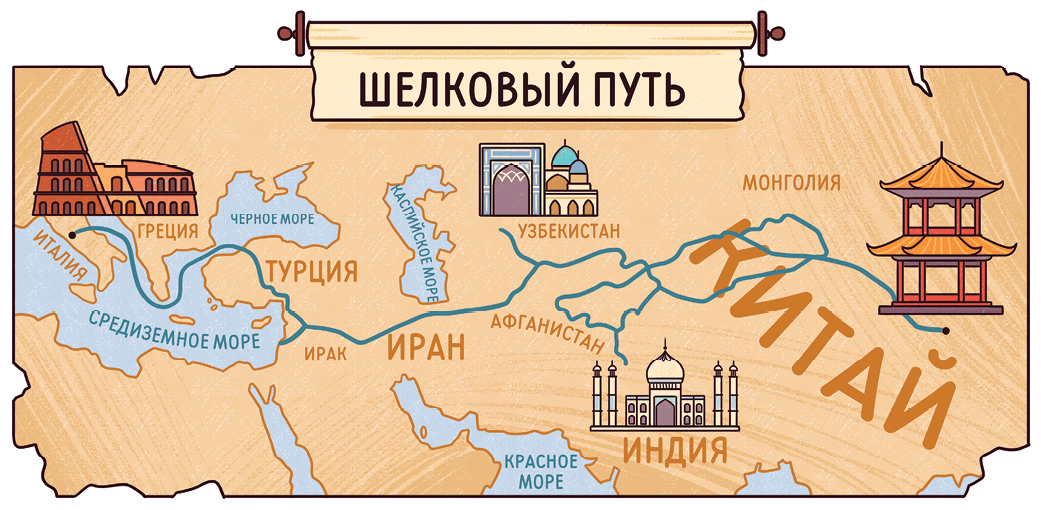 Один из самых известных и значимых маршрутов – это Великий шелковый путь. Ко II веку до н. э. обширная сеть торговых направлений соединяла восточную Азию, в том числе Китай, с Ближним Востоком, Черноморским побережьем и Средиземноморьем. Верблюжьи караваны перевозили шелка, специи, драгоценности и много других диковинных товаров. Постепенно на Великом шелковом пути стали появляться караван-сараи. Это были целые комплексы под открытым небом, где путники останавливались, чтобы дать отдых животным, пополнить запасы, переночевать в безопасном месте.