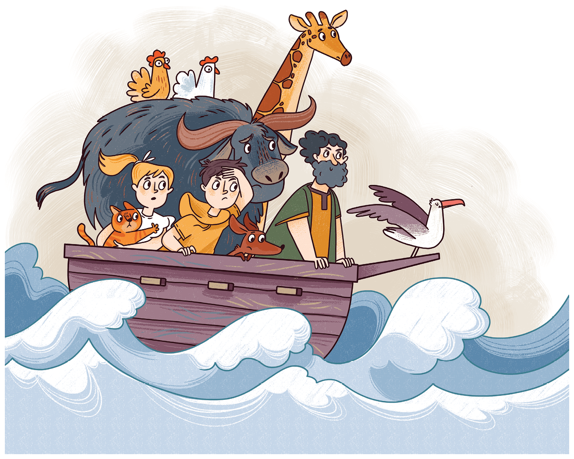 – Как Ной, спасаясь от Всемирного потопа, построил корабль и взял с собой разных животных?