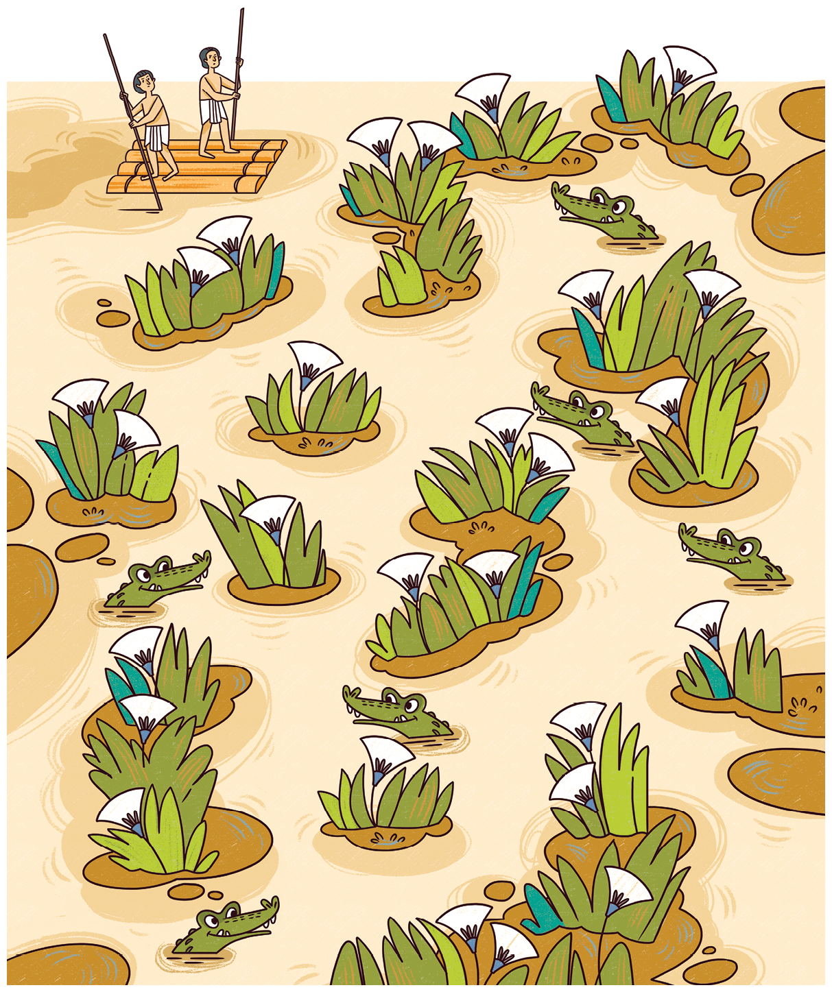 ПОМОГИ ДВУМ ДРЕВНИМ ЕГИПТЯНАМ ПРОПЛЫТЬ НА ЛОДКЕ ПО РЕКЕ НИЛ ТАК, ЧТОБЫ НЕ СТАТЬ ОБЕДОМ ДЛЯ КРОКОДИЛОВ.