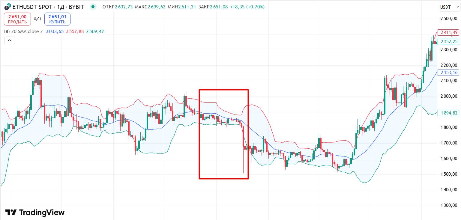 Рисунок 13 Паттерн "Обрыв" и поведение индикатора BB