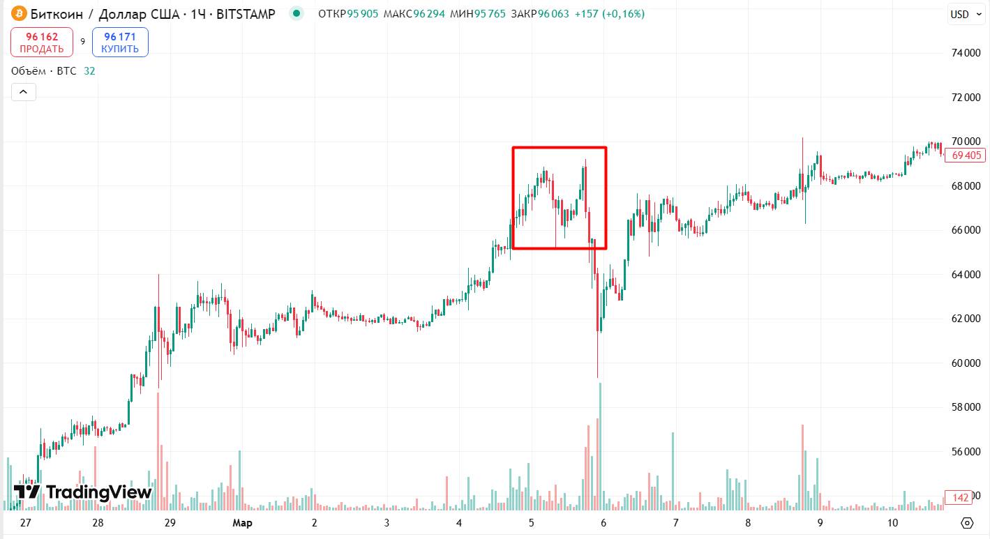 Важным для понимания является паттерн "ложный пробой" – ситуация, когда цена ненадолго пробивает важный уровень поддержки, вызывая панику среди держателей длинных позиций, но затем возвращается выше этого уровня. Такие движения часто используются крупными игроками для сбора ликвидности перед следующим значительным движением цены.