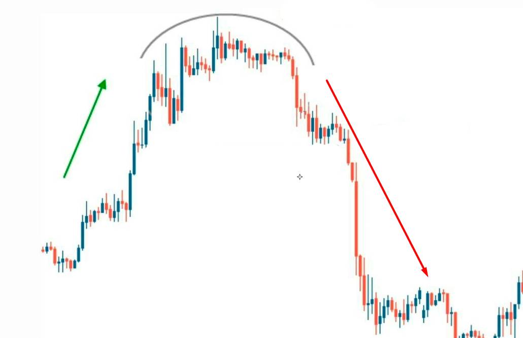 "Закругленная вершина" имеет более низкую статистическую надежность – около 58%, однако этот показатель может быть значительно улучшен при использовании правильных методов подтверждения. Ключевым является сочетание с индикатором OBV (балансовый объем), который должен начать снижаться еще до явного падения цены.
