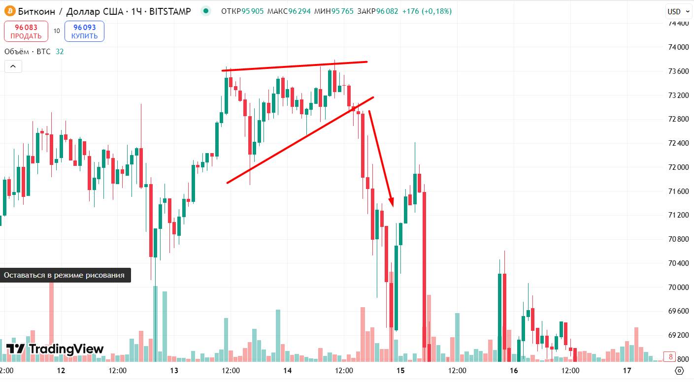 "Двойная вершина" – еще один классический паттерн медвежьего рынка. Он формируется, когда цена дважды пытается пробить определенный уровень сопротивления, но терпит неудачу. Каждая неудачная попытка роста подрывает уверенность покупателей и привлекает новых продавцов на рынок. После формирования второй вершины обычно следует значительное снижение цены.