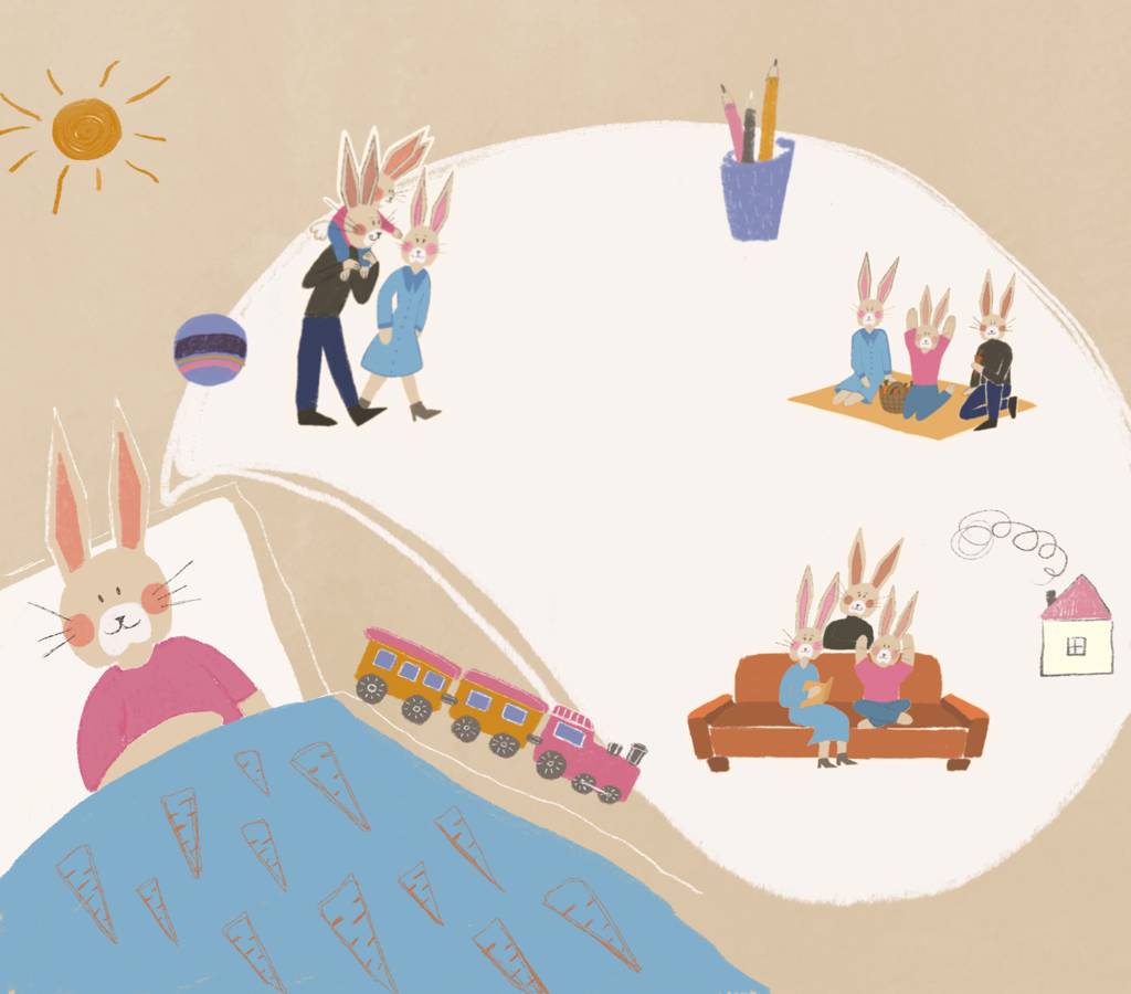 Он знакомился с другими зайчатами, с интересом пробовал разные занятия, любил рисовать и изобретать увлекательные игры, и с радостью бежал к родителям показать, когда открывал для себя что – нибудь новенькое.