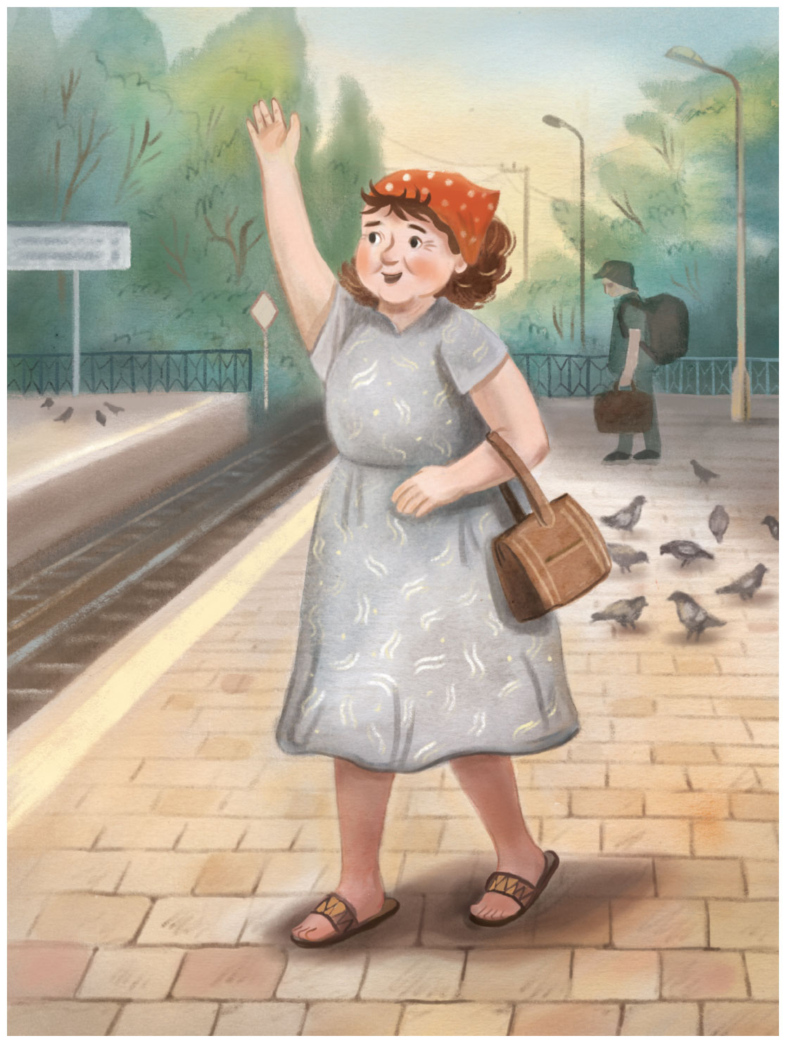 Тётя Маруся встретила их на станции. Ваня ещё издалека, подъезжая, заметил на платформе её крупную фигуру в светло-сером платье.