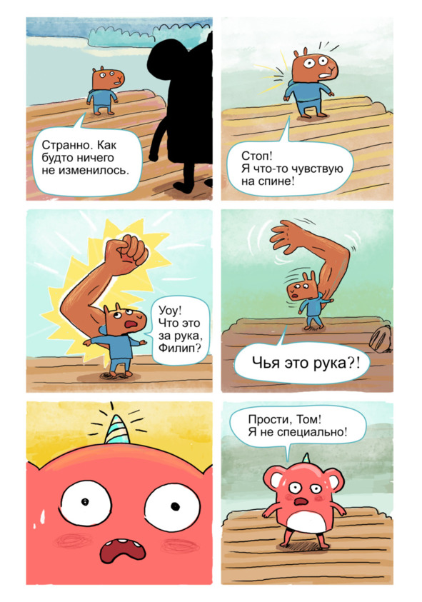 Обожаю, как рисует Ильнар! Лёгкость и точно переданная эмоция. Момент, когда Фил пытается вовремя свинтить – прелесть.