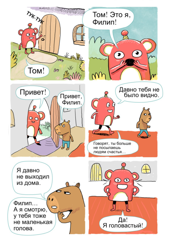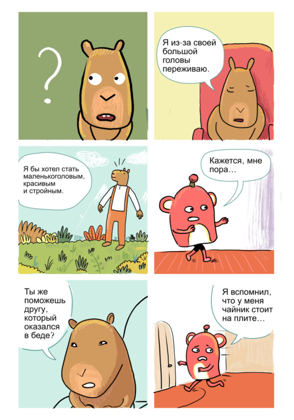 Капибара с комплексами и без, или всё, как у людей. Комикс прочитала с удовольствием сама. Мне очень понравилось. Ох уж это чужое мнение! Вроде уже взрослая тётка, а очередной раз поймала себя на мысли, что был бы у меня Фил… я бы делов-то наворотила.
