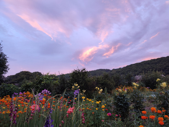 И, конечно! На фоне бабушкиных клумбочек закат смотрелся еще красивее. Ярче!
