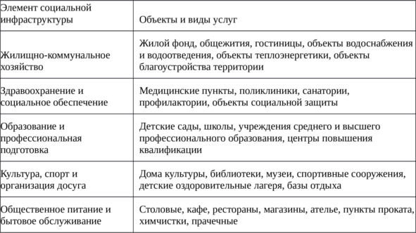 В структуре социальной инфраструктуры предприятий нефтегазового комплекса можно выделить несколько ключевых элементов (таблица 1.1.1).