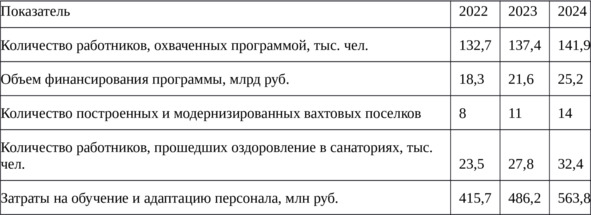 В таблице 2.1.2 представлены основные показатели реализации программы «Газпром для Севера» за 2022—2024 гг.