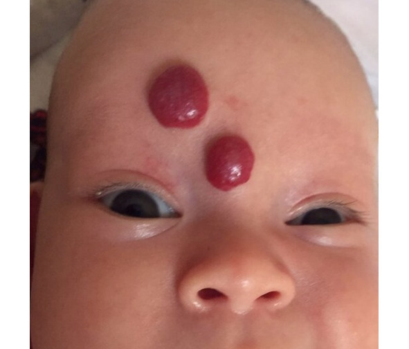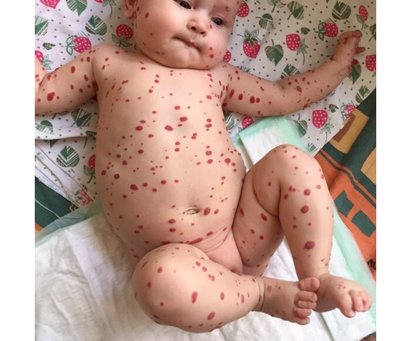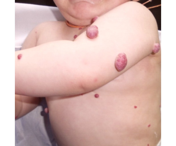 Fig. 18 Benign neonatal hemangiomatosis. The child was diagnosed with 1096 hemangiomas on the skin and mucous membrane.