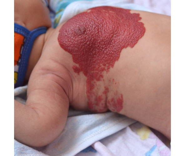 The most similar clinical picture when examining a patient are RICH and PICH hemangiomas. It is not for nothing that 5 years ago only 2 types of congenital hemangiomas were determined RICH and NICH and only recent studies have revealed the PICH variant. The tumor-like formation does not have smooth contours and may also rise unevenly above the surface of the skin.