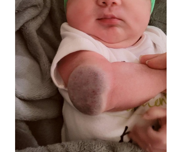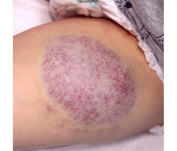 Fig. 11 Congenital infantile hemangioma in a 3-day-old child. Clinically, it is preliminarily assessed as a RICH hemangioma.