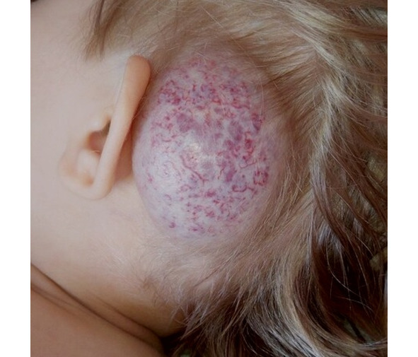 Kaposiform hemangioendothelioma is a rare vascular tumor characterized by local aggression, but without metastasis. The incidence rate is approximately 1:100,000 children. This disease has no gender, boys and girls suffer from this disease with equal frequency. The head and neck are most often affected (40%), less often the trunk (30%) or limbs (30%). In the neonatal period, it occurs in 60% of cases, and is detected in 93% of cases during infancy.