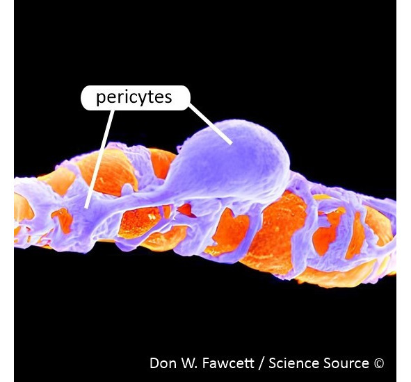 Pericytes are part of the walls of small blood vessels, including capillaries.