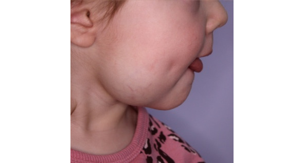 Fig. 24 Pyogenic granuloma in the cheek area on the right. The patient is 2 years old.