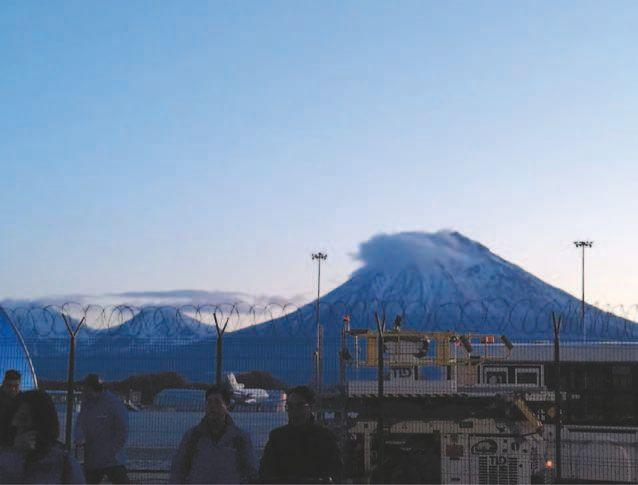 Два с половиной часа лёта. И вот наша бригада из девяти врачей и руководителя уже в Петропавловске-Камчатском. Всходит солнце, плюс три градуса, небо почти чистое. Уже с трапа самолёта видны вулканы. Корякский вулкан пригрел проплывающую мимо тучку, и она зацепилась за его вершину, создавая наикрасивейшую картинку.