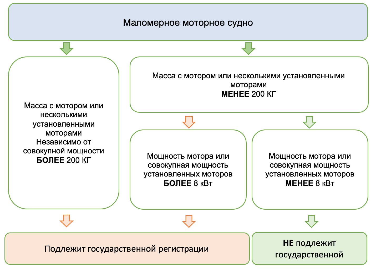 Обязательной государственной регистрации подлежат все лодки, независимо от типа движителя – гребные, парусные, моторные, если они имеют массу более 200 килограммов в снаряженном состоянии! Либо, независимо от массы судна в снаряженном состоянии, в случае установки мотора мощностью более 8 кВт, примерно 10 л.с.)