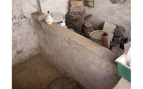 Когда люди давили ногами виноград, его сок через это отверстие выливался в бочки. Много лет этой давильней никто не пользовался, и сейчас здесь была кладовка. Пол давильни был сложен из тщательно пригнанных каменных плит. Вес одной такой плиты достигал до 50 кг. Это были вручную тесанные плиты.