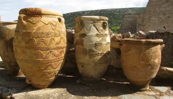 Старожилы рассказывали, что их возили на осликах за 40 км от деревни. А некоторые просто доставали из руин минойского дворца. Ими был покрыт двор и дорога, ведущая ко дворцу.