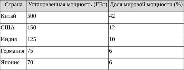 Таблица 2.1. Лидеры по установленной мощности солнечной энергетики (2023 г.)