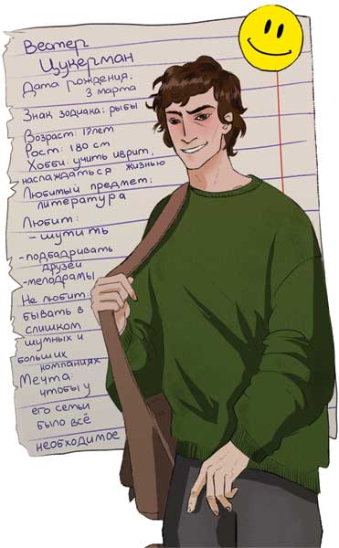 – Но кроме «шалома» ничего не знает. Сты-до-ба, – членораздельно и чуть серьёзнее добавил мой сосед, глядя в парту и крутя шариковую синюю ручку длинными пальцами.
