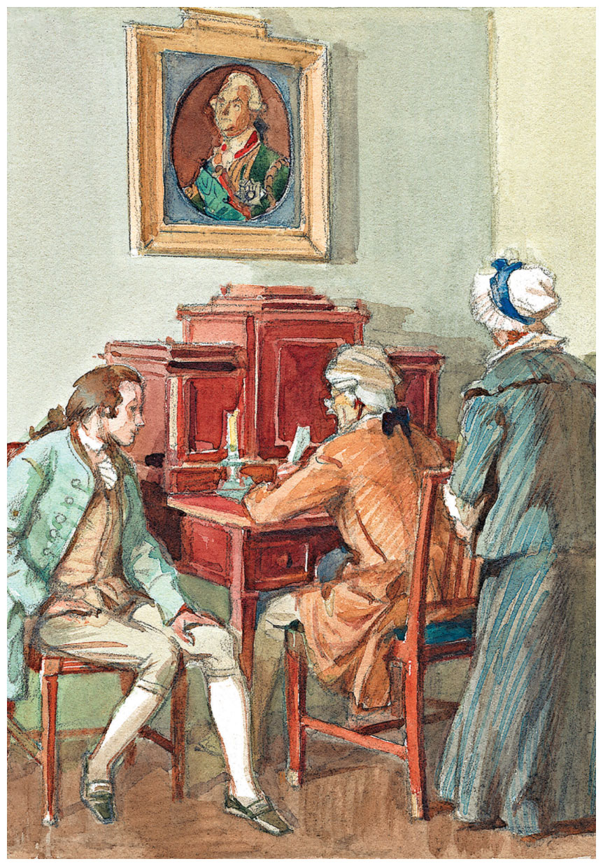 Батюшка не любил ни переменять свои намерения, ни откладывать их исполнение. День отъезду моему был назначен. Накануне батюшка объявил, что намерен писать со мною к будущему моему начальнику, и потребовал пера и бумаги.