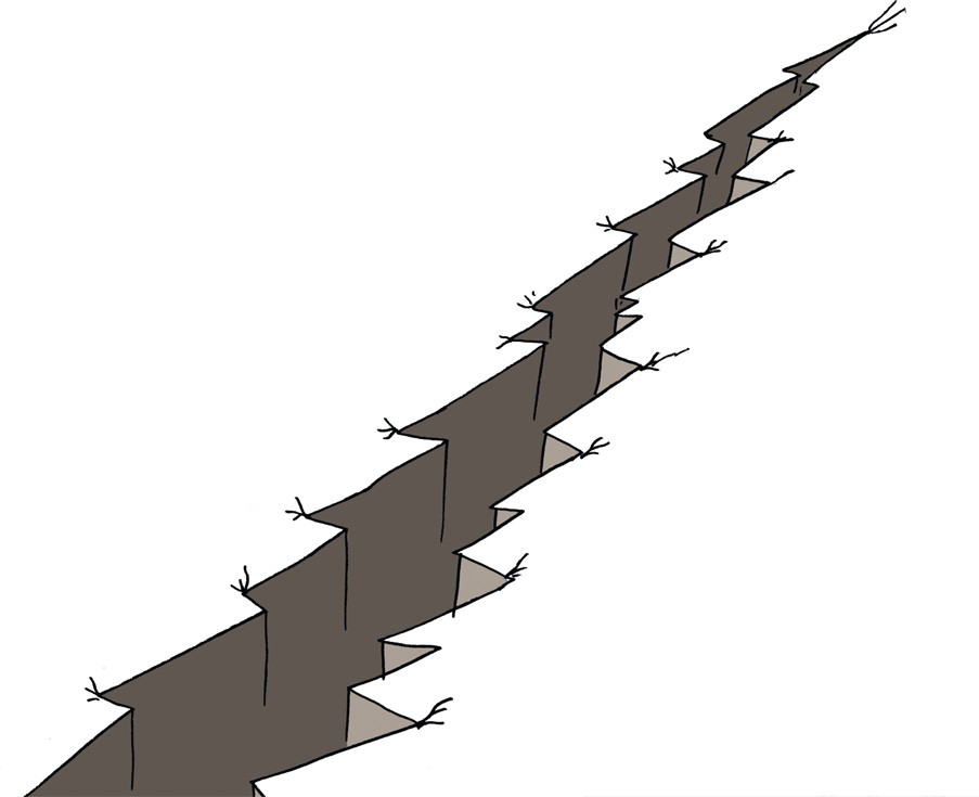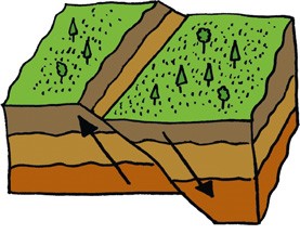 Разлом – это узкий промежуток между двумя тектоническими плитами. Когда одна плита двигается под другую или вдоль нее, на границе разлома создается избыточное давление, и в конце концов плиты срываются. Так происходит землетрясение.