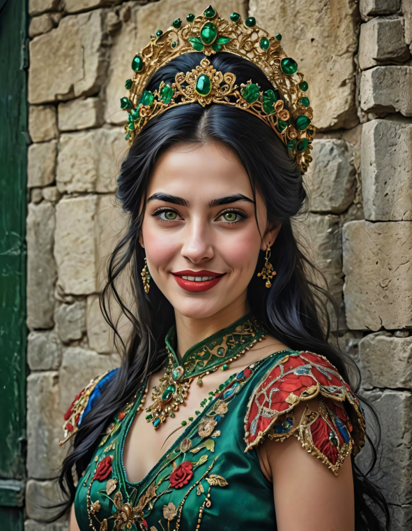 По дороге к горе они встретили старую женщину, которая сидела у дороги и выглядела очень грустной. Она была одета в рваные одежды, и её глаза были полны печали. Рустам и Амир остановились, чтобы узнать, в чем дело.
