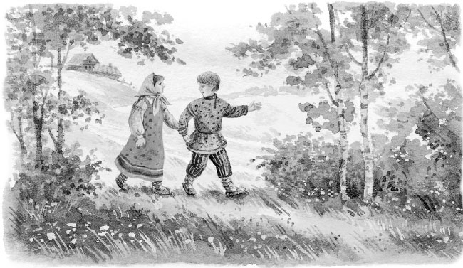 – Знаешь ли что? – сказал брат сестре. – В школу мы ещё успеем. В школе теперь душно и скучно, а в роще, должно быть, очень весело. Послушай, как кричат там птички; а белок-то, белок сколько прыгает по веткам! Не пойти ли нам туда, сестра?