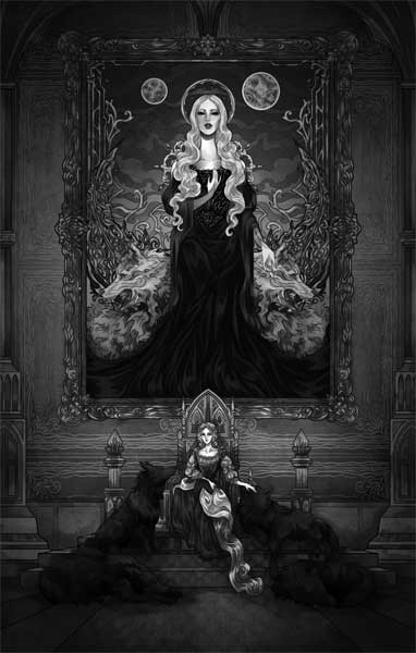 Холоднокровка достал деревянный ящичек, на котором были вырезаны волки и луны. Вытащил длинное перо, черное, как сердце в груди Габриэля, и поставил на подлокотник маленькую бутылочку. Обмакнув перо в чернила, он поднял темные выжидающие глаза.