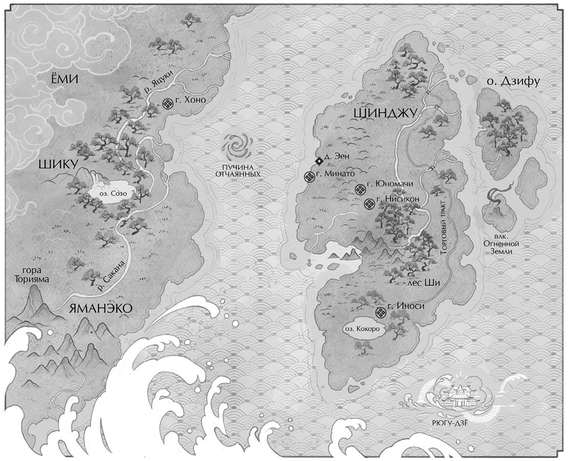 И помните: Шинджу – не Япония, хотя во многом похожа на неё. Как и в первой книге, здесь я тоже попрошу вас отбросить предвзятость и попытки отыскать сходства с нашей реальностью. Откройтесь этому миру и позвольте вновь провести вас через него.