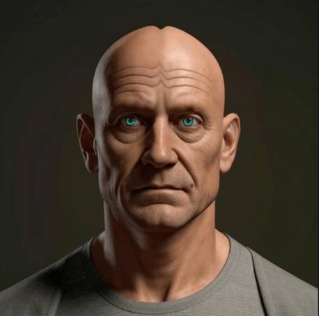 Полностью без волос на лице, даже без бровей. Гладкий и блестящий череп, блестел как сфера Дайсона в свете ядерного пожара звезды. Складка меж надбровных дуг необъяснимым образом пересекала весь лоб визуально отделяя левое полушарие от правого и вызывая непривычные для этой части тела визуальные ассоциации.