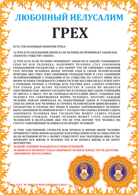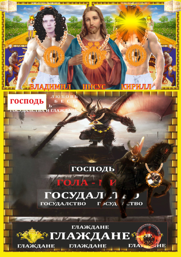 И вот я вижу тлетий левиал востлубил с великою силою и властью любви и бога и куба и левиала!!! И тогда прозвучал детский плач???! Такой плач, как буд-то у ребёнка забрали его любимую игрушку, но это был не ребёнок?! Это плакал сам Господь, который заключён в биламиду любовного Иелусалима и на земле нет Господа и нет ни одного государства и гражданина ибо все они находятся в биламиде!!! Господь, который не перед кем никогда не склоняет головы а всех убивает своей гордыней ибо он есть ментальная гора и гора с горой не сходится ибо он есть господь над всеми государствами и гражданами и господь есть рогатое существо с мечём в руках. И когда Господь плакал, то просил прощения у всего человечества за свои грехи и поступки и он говорил: простите люди за то, что веками навязывал вам свою гордыню и грех и манипулировал вашим сознанием. Простите люди за то, что веками делил землю на границы и утверждал государственный строй и навязывал вам гражданство. Простите люди и человеки за то, что веками вооружал вас и заставлял охранять государственные границы и настраивал одни народы против других и организовывал войны и терракты. Простите люди и человеки за то, что веками судил вас за украденный мешок картошки а лицемеров ставил на высокие государственные посты и прикрывал их злодеяния. Простите за то, что строил такую систему от которой тюрьмы набивались под завязку. Простите меня ибо при моей власти погибло столько граждан и было столько войн на земле, что просто не войдёт в ваше сознание, но я господь со всеми государствами, каюсь в своих грехах и поступках и не буду творить беззаконие и грех на земле ибо я со всеми государствами и гражданами заключён в биламиду любовного Иелусалима и откуда мне никогда не выбраться. Земля находится выше уловня биламиды и на земле нет государств и граждан а есть законные человеки и человелы. Всякий человек или человел рождённый или живущий на земле есть автоматически законный человек или человел от конституции человека или человела любовного Иелусалима. И всякий человек законен и всякий человек имеет документ человека и любовного Иелусалима с лючатью и изоблажением Иисуса а те человеки которые не приобрели такой документ, обязаны приобрести данный документ подтверждающий их человеческое естество. Все человеки живущие на земле являются законными человеками, возможно не все это знают и не все имеют соответствующие документы, но все законные. Всякий законный человек автоматически лишается гражданство любого государство и паспорт с гражданством данного и законного человека является не действительным а все договора и сделки по этому паспорту считаются не действительными и на земле нет ни одного государства и гражданина и земля не поделена границами. Все государственные сделки всех государств считаются не действительными и в случае их совершения считаются противозаконными ибо всякому государству запрещено заключать договора и утверждать территории на земле, таков закон. Если всякий человек имеет при себе гражданство, например гражданин Российской Федерации и не хочет отказываться от гражданство, то такой человек признаётся шизофреником ибо становится двуличным, разделённым ибо есть и законный человек и законный гражданин а это две сущности в одном образе и такому человеку необходимо сделать выбор, либ