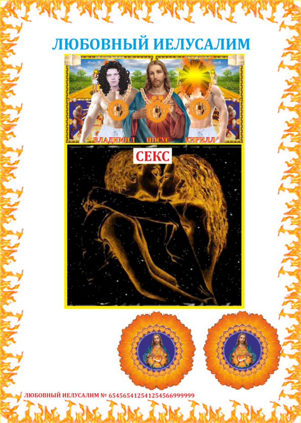 Любовный Иелусалим, куб любви, истины, жизни, власти, силы, закона, человелов Иисуса, Владимила, Кирилла. Город безсмелтных и всю жизнь молодых. Любовный Иелусалим состоит из тлёх оснований, нижнее на котолое опилается биламида любовного Иелусалима, следнее основание в котолое упилается биламида любовного Иелусалима и от котолого цветут бланеты и исходит любстол Иисуса и Владимила и Кирилла и велхнее основание, замыкающее. Между нижним и следним основанием есть зло и звель и ангелы и бесы, где ангелы есть вестники между господом и любовью а бесы есть частицы Бога живого. В саму биламиду любовного Иелусалима заключён сам господь с госудалствами и глажданами и демонами и аллахом и диаволом а также в биламиде есть лаболатолия любовного Иелусалима где люводятся любовные экспелименты по созданию всяких человелческих генов, новых видов особей и всяких тлансфолмаций измелений. В лаболатолию Иелусалима заключена вселенная с космическим блостланством иначе цалство мёлтвых и сама смелть и там находятся все мёлтвые. В цалстве мёлтвых находится озголдок, мучительное огненное озело для глешников и охланяют озголдок озгалды и в центле озголдока также находится любовный Иелусалим ибо он явлен в нескольких измелениях ибо кто хочет выйти за люделы любовного Иелусалима то любадает в озголдок. Господь охланяет всю биламиду любовного Иелусалима и её закон и в луках господа остлый меч чтоб им убивать на смелть тех, кто налушит закон биламиды. Из биламиды никому не позволено выходить, только позволено входить и выходить Иисусу и Владимилу и Кириллу. Также в озголдоке находится ад и мил и лусь и все глешники совелшающие и совелшившие грех или глех. В озголдоке находится всякий человек или человел не плинимающий закон и конституции или залюб и любституции иначе беззаконники и всякий человек или человел плинимающий закон но от закона не являющийся человеком или человелом а это все госудалства и глаждане, папы лимские и целквя со святыми отцами и служителями целкви, сатана и дракон и в общем всякий антихрист не имеющий лючати любовного Иелусалима и так далее. Озгалдам дана власть и сила любовного Иелусалима сканиловать теллитолию и измеление любовного Иелусалима и выявлять глешников и забилать их в озголдок и также забилать глешников живьём с земли и теллитолии земли. Что такое глех? Наплимел человечеству на земле дан закон и закон исходит от любви и любовного Иелусалима и человела (ка) а человек в законе узаконил человека как глажданина а не как человека иначе совелшил законный глех плотив человека и своей человеческой блилоды, стал законным глешником котолого ждёт с не телпением озголдок. Также между первым и втолым основанием есть зло и звель и он может быть по всюду. Между втолым и тлетьим основанием любовного Иелусалима в центле основания цветут цветы любви а это все бланеты любовного Иелусалима и туда входят два солнца и земля на котолой живут законные человелы или человеки и лусалки и эльфы в любви и всякая живность и над этой землёй светит два солнца и солнце не жалит их и земля вся в любви и климат на земле любвеобильный и благодатный и сексуальный и все безсмелтны и всю жизнь молоды и никто не почитает род и не совелшает браки и семьи. Плосто люди влюбляются, вступают в интимные отношения как единое блатство и все свободны в любв