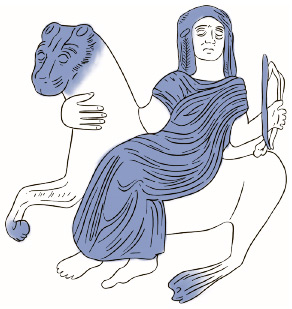 Бендида, восседающая на льве[6]. Изображение на фракийском кувшине. IV в. до н. э.