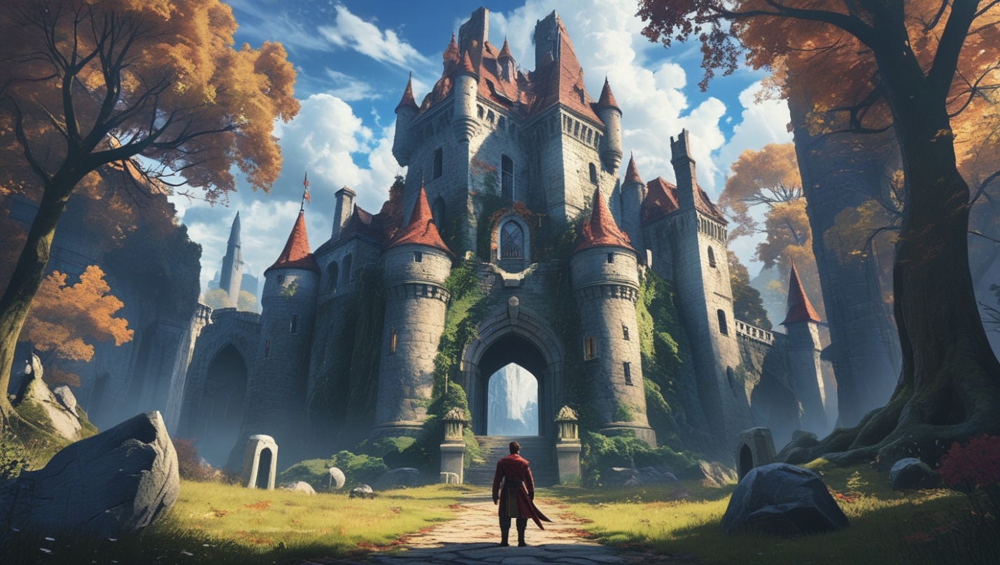 Перепрыгнув через ручей, Артём продолжил свой путь. Вскоре он оказался у подножия холма, на котором возвышался замок. Его величественные стены, покрытые мхом и лианами, казались одновременно пугающими и завораживающими. Артём почувствовал, как страх и волнение смешиваются в его груди.