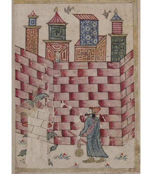 Рис. 10. Путник у стен Медного города, «Книга сюрпризов» (Китаб аль-Булхан), л. 45b
