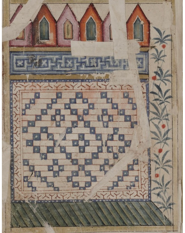 Предположительно к персидскому древнему календарю будет относиться еще несколько иллюстраций рукописи. Ниже рисунок, обозначенный как «Внушительный замок».