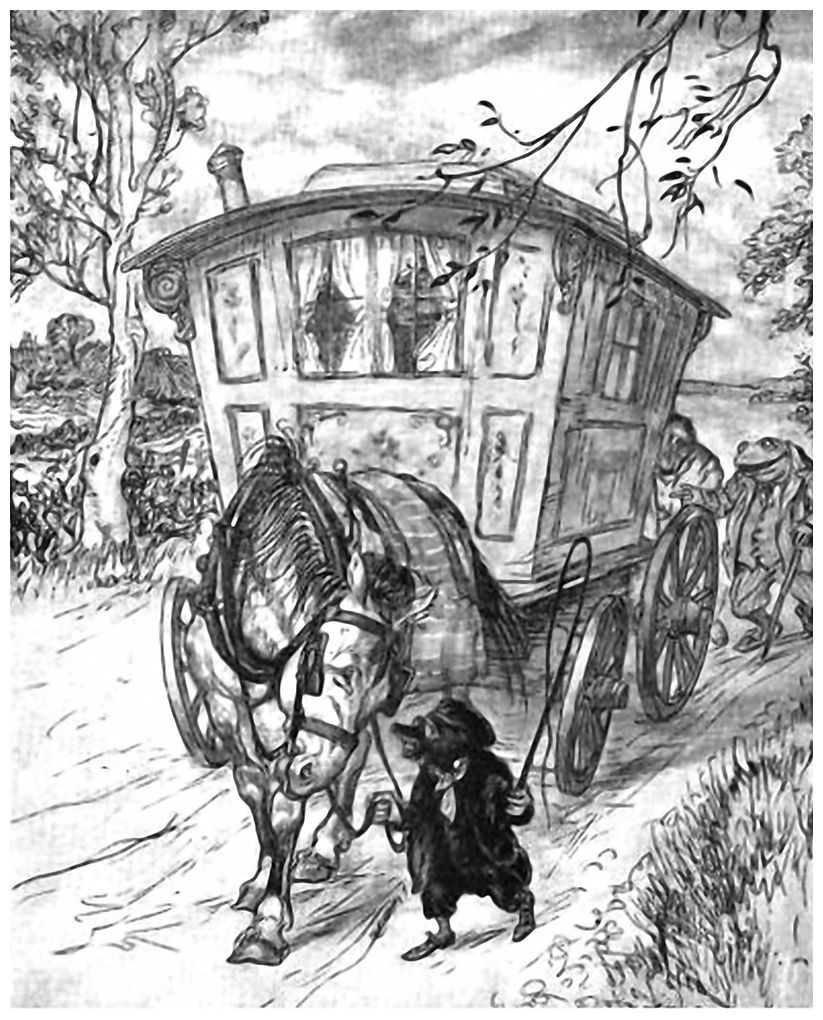 – Вот! – крикнул Жаб, широко расставив ноги и раздуваясь от гордости. – Этот маленький фургон и есть воплощение настоящей жизни. Открытые дороги, пыльные большаки, вересковые пустоши, выгоны, равнины, холмы!.. Бивуаки, деревни, маленькие и большие города! Сегодня здесь – завтра там! Путешествия, перемены, новые волнующие впечатления! Весь мир перед тобой, и каждый раз новый горизонт! И заметьте: это самый замечательный в своем роде фургон, какой когда-либо существовал. Забирайтесь внутрь и посмотрите, как там все обустроено. И все я продумал сам, да!