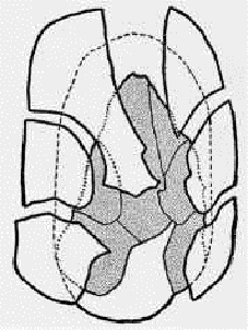 рис. 1. Кусок кремня или керн с отколотыми отщепами (по Невиллу Джонсу)