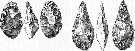 рис. 3. Найденные в Испании ручные рубила грубого и более тонкого типа (по Обермайеру)