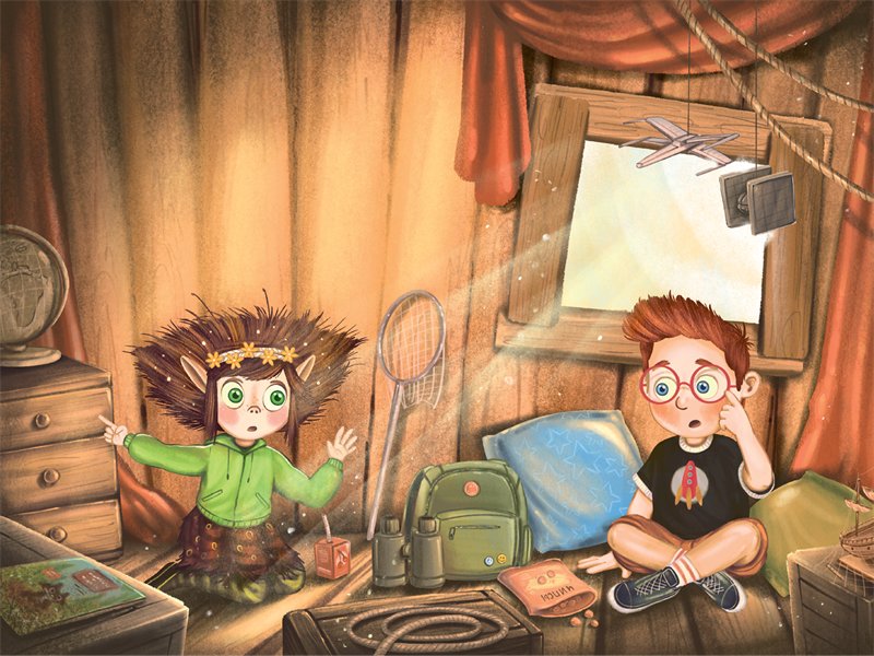 Клара высунула голову из домика на дереве и посмотрела вниз. Оскар стоял внизу у верёвочной лестницы и смотрел на неё сквозь толстые линзы очков.