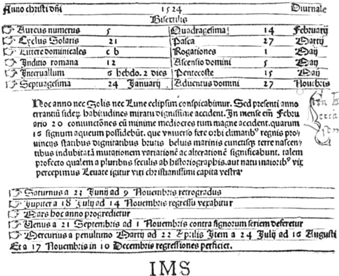 Фрагмент с. 389 из альманаха Штефлера и Пфлаума с прогнозом на 1524 год. Баварская государственная библиотека