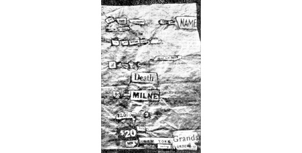 Как и предыдущее письмо, это послание было составлено из слов и букв, вырезанных из газет. Само послание представляло собой кусок жёлтой обёрточной бумаги. Она была мятой и имела бледно-розовые разводы, похожие на кровавые. Впоследствии судебно-химическое исследование подтвердило, что подозрительные следы действительно оставлены кровью человека. Помимо листа с текстом, в конверт была вложена вырезка из газеты, издававшейся в городе Олбани, штат Нью-Йорк. Журналисты в Филадельфии, находившиеся в непрерывном контакте с Калебом Милном Вторым, сообщили, что настроение деда изменилось, и теперь он не сомневается в том, что жизни внука угрожает опасность.