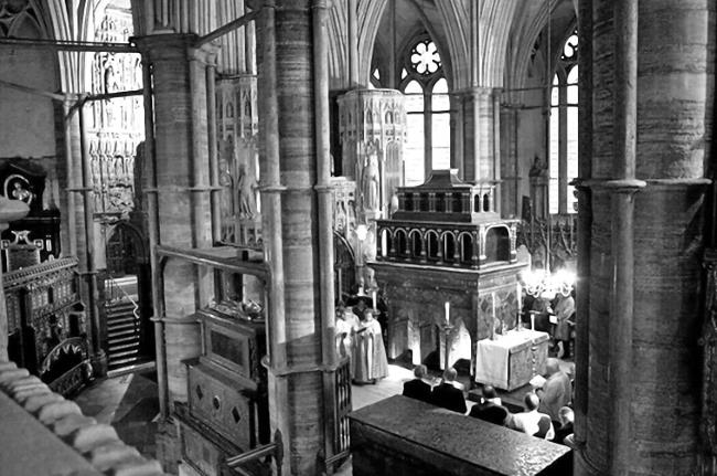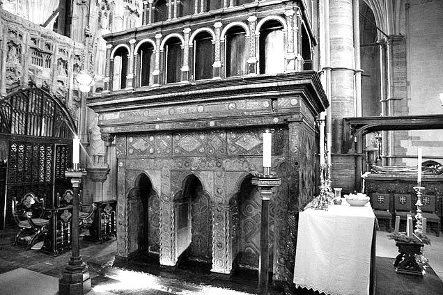 Часовня отделена от алтаря резными вратами XV столетия. Перед ними находятся щит короля Эдуарда I и ЗНАМЕНИТЫЙ ТРОН ДЛЯ КОРОНАЦИЙ АНГЛИЙСКИХ КОРОЛЕЙ СО ВДЕЛАННЫМ В НЕГО КУСКОМ ПРОСТОГО КАМНЯ. ЭТО – «КАМЕНЬ СУДЬБЫ», ОДНА ИЗ ИСТОРИЧЕСКИХ РЕЛИКВИЙ АНГЛИИ. Король Эдуард I, покоритель Шотландии, привез оттуда в 1296 году этот Камень, считавшийся символом независимости Шотландии, и вделал его в трон английских королей. Начиная с Эдуарда I на этом троне перед алтарем Вестминстерского собора короновались все короли Англии. В эпоху ранее XX века только однажды трон покидал стены Вестминстерского аббатства: в декабре 1653 года его переносили во дворец Вестминстер Холл ДЛЯ ЦЕРЕМОНИИ ПРОВОЗГЛАШЕНИЯ КРОМВЕЛЯ ЛОРДОМ-ПРОТЕКТОРОМ. См. https://www.booksite.ru/fulltext/0/001/005/203/59.htm.