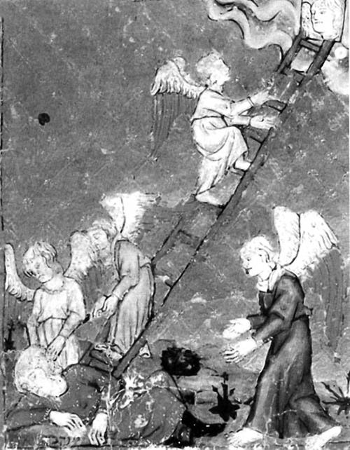 Рис. 24. Лестница Иакова и камень под головой Иакова. Старинная миниатюра. Взято из Интернета https://lechaim.ru/academy/russkij-midrash/